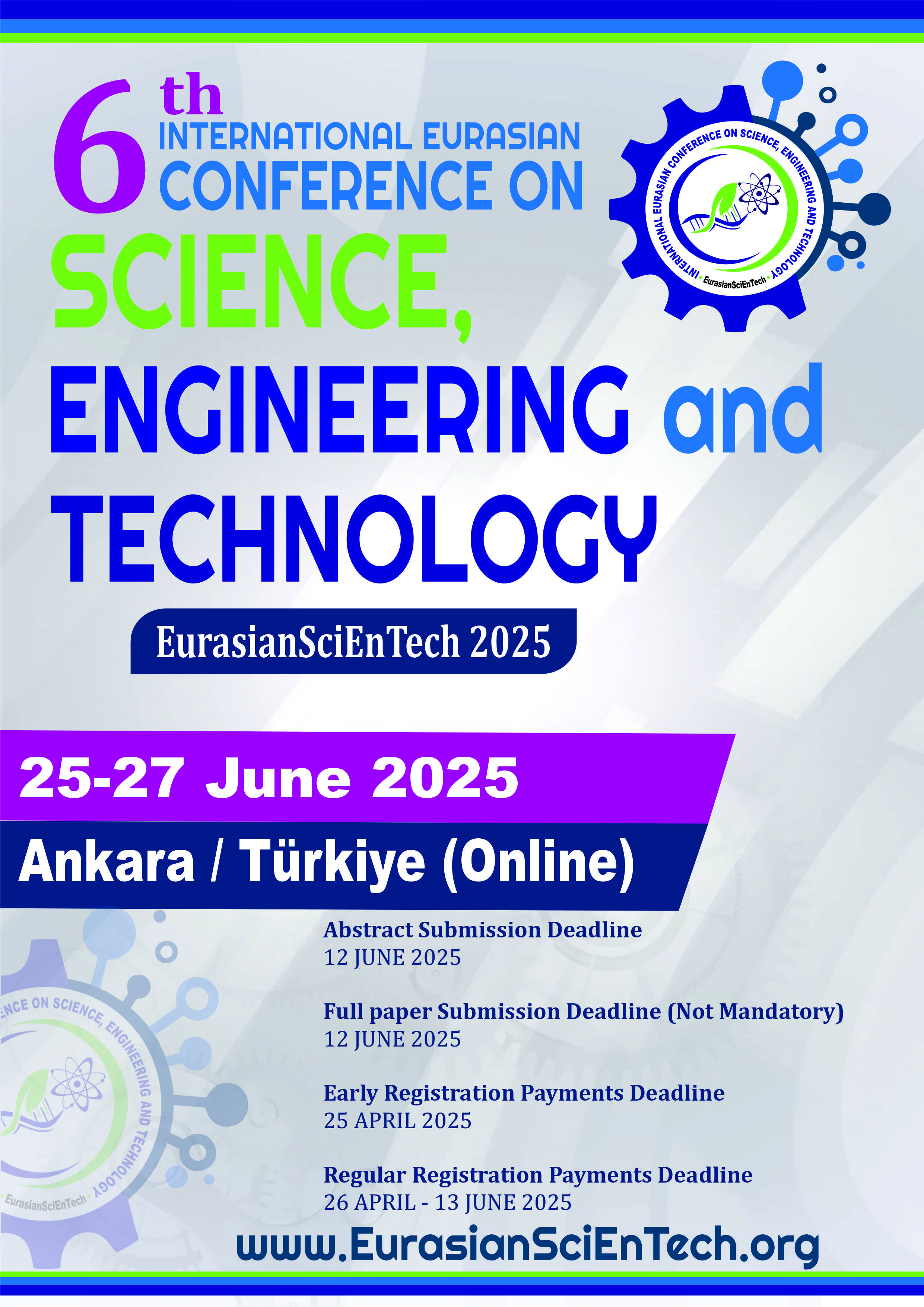It is our great pleasure to invite you to participate in 6th International Eurasian Conference on Science, Engineering and Technology (EurasianSciEnTech 2025), which will be held on ONLINE on June 25-27, 2025. The aim objective of “EurasianSciEnTech 2025” is to bring together leading academicians, researchers, scholars as well as industrial professionals from all over the world to exchange and share their experiences and research results about all aspects of Science, Engineering and Technology and discuss the practical challenges encountered and the solutions adopted.